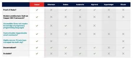 Casper网络具有允许灵活权限、可升级性、能源效率、低延迟和高安全性的功能。Casper能够承受不断变化的业务需求和开发人员需求,并随着不断变化而进行升级。可升级的合约确保开发人员和企业可以逐步开发他们的系统。对开发者友好可以确保非加密开发人员可以快速加入。这已经吸引了多家企业和Web3团队与 Casper建立合作伙伴关系。